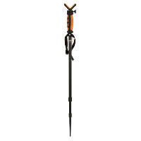 Monopod style shooting stick constructed of 6061-T6 aluminum tubing. Features a ½” wide webbing wrist strap with a plastic buckle, twist lock extension locks and an over molded grip. Adjusts from 30” to 60”. Mission logo featured on the pole under the grip.