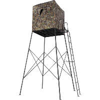 The Primal Treestands Garrison is an enclosed hunting quad pod that measures 5’ x 5’ and has 12’ of ground clearance. The Garrison has a 210D fabric blind enclosure with 3 double zippered horizontal windows and 3 double zippered porthole windows. The frame is made of solid steel and is covered in a Realtree Edge fabric.