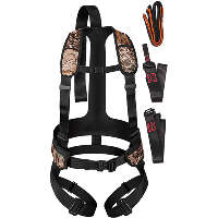 The Primal Protector Full Body Harness is a lightweight and comfortable full body harness. Features fully adjustable leg, waist and shoulder straps and quick release, color coded leg and waist buckles. Has a weight capacity of 300 lbs. Realtree Edge fabric.