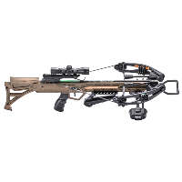 Stepping up the speed game the RM415 isn't to be outdone. 215lb limbs send crossbolts down range at a searing 415fps with commanding accuracy and 173 ft-lbs of kinetic energy. Tied together by a premium set of strings the energy-efficient eccentric system spans 14.5" of power stroke, yet is easily cocked with the QuietCrank (provided with the kit) to effortlessly engage the integrated DFS Technology (Dry Fire Safety) trigger assembly. Sitting atop the one-piece molded flat dark earth stock is an ultra-bright fog proof, shockproof, and water resistant red/blue Illuminated 4x32 scope with a precision-etched multi-position reticle.